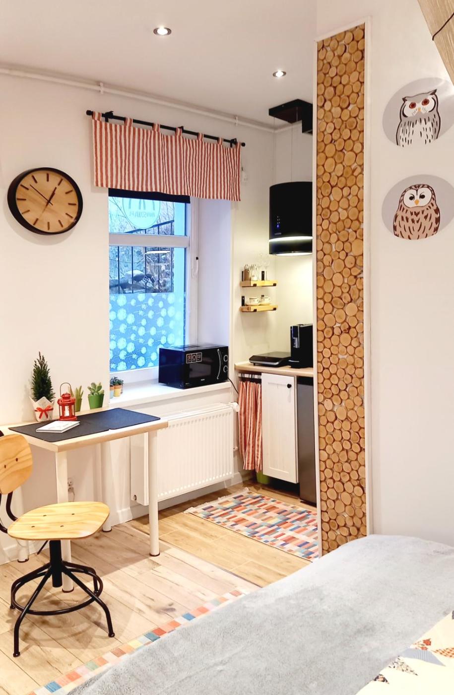 Apartament. Featuring a private entrance, this apartment comprises a kitchenette, 1 bedroom and 1 bathroom with a shower and a hairdryer. In the well-equipped kitchenette, guests will find a stovetop, a refrigerator, kitchenware and a microwave. Boasting a terrace with garden views, this apartment also provides a washing machine and a flat-screen TV with streaming services. The unit offers 1 bed. Apartament - 2 osobowy. Powierzchnia pokoju ok.: 17 mkw.