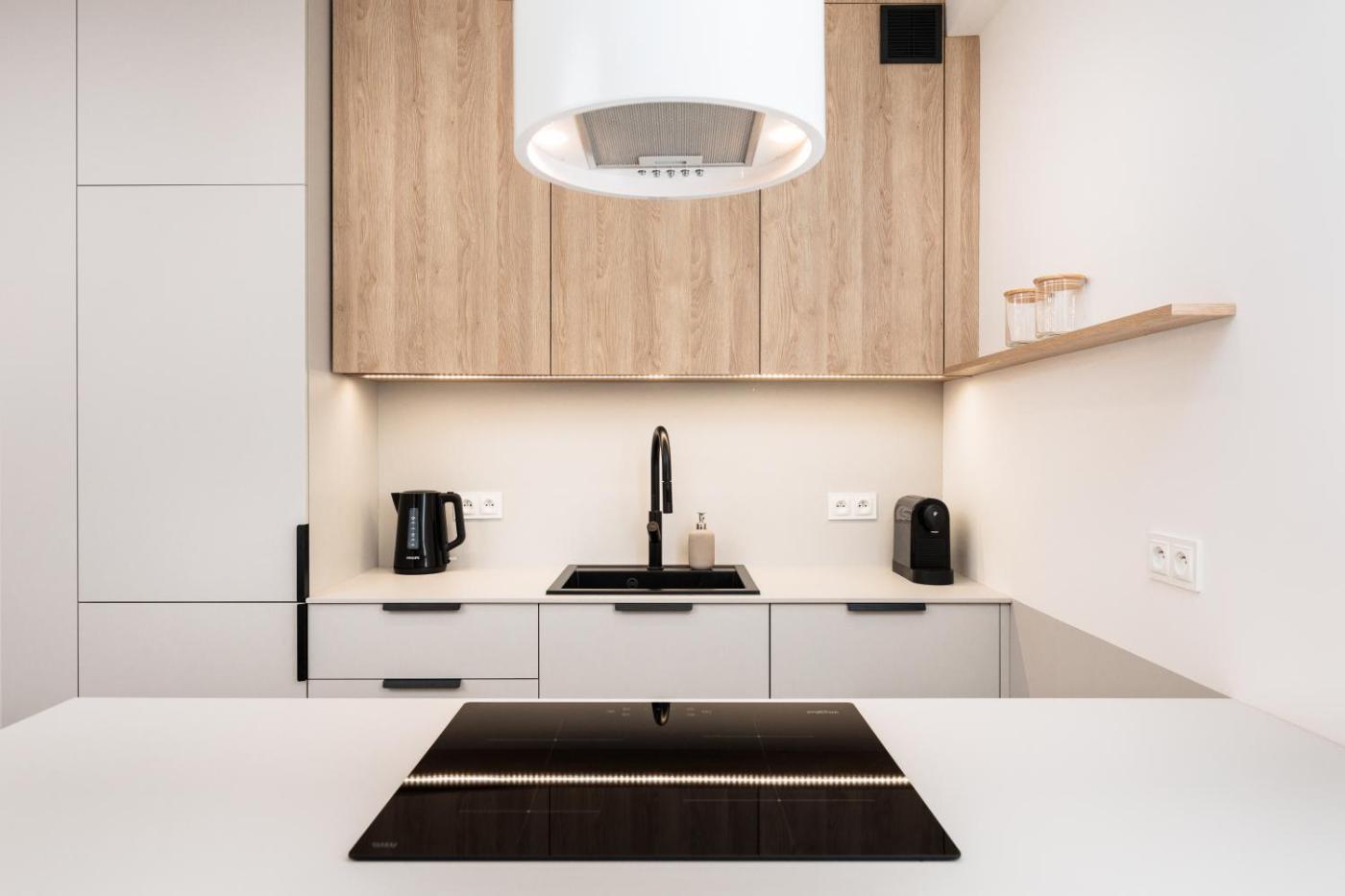 Oferta apartamentu obejmuje sypialnię (1), salon, aneks kuchenny z pełnym wyposażeniem, w tym lodówką i ekspresem do kawy, a także łazienkę (1) z prysznicem oraz bezpłatnym zestawem kosmetyków. W apartamencie zapewniono ręczniki i pościel.