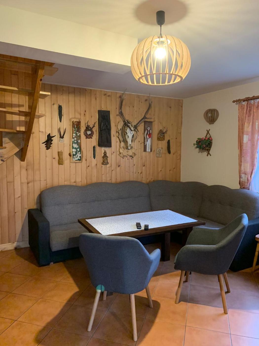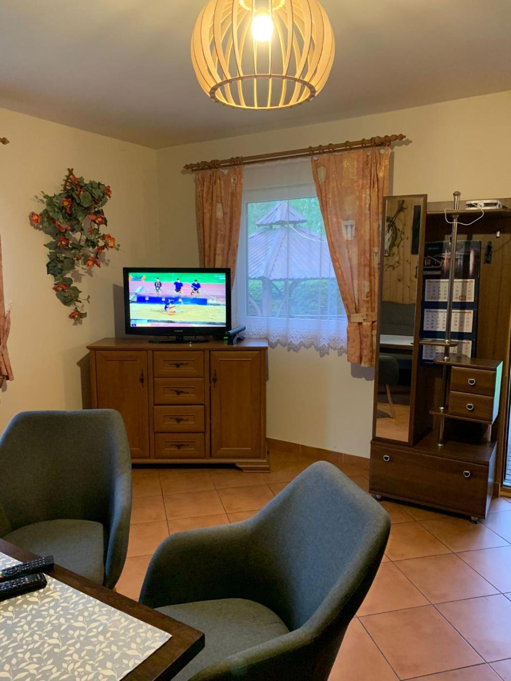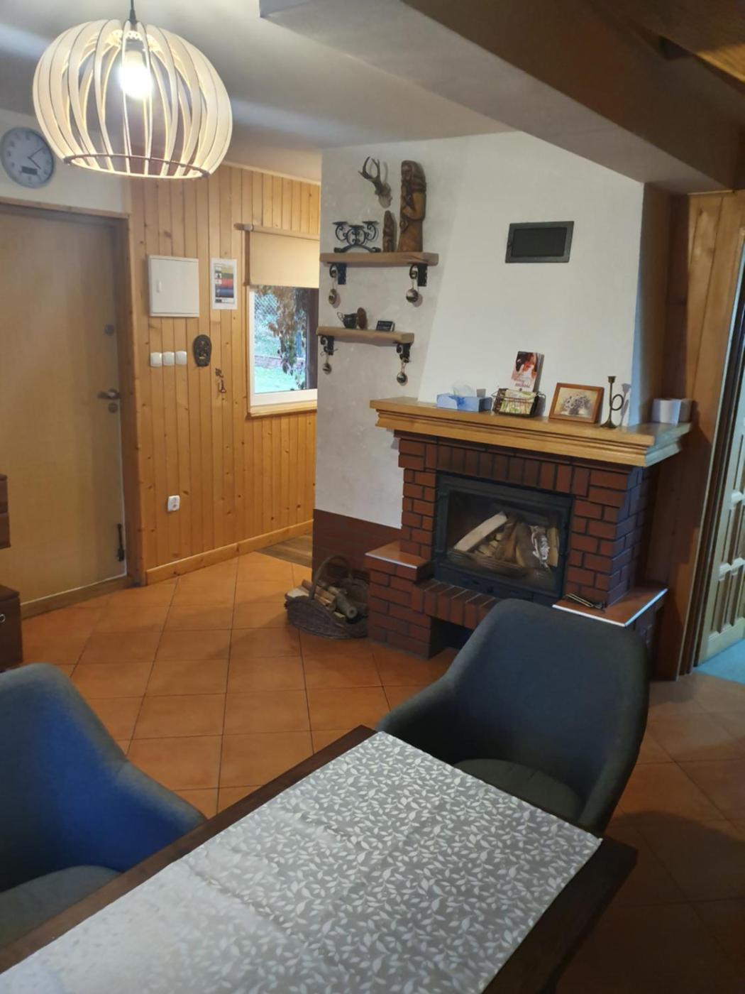 Dom z 3 sypialniami. The fireplace is the standout feature of this holiday home. Guests will find a stovetop, a refrigerator, kitchenware and a microwave in the well-fitted kitchenette. The holiday home also includes a barbecue. The holiday home features a private entrance, a seating area, a terrace with garden views as well as a shared bathroom boasting a shower. The unit has 6 beds. Dom wakacyjny - 8 osobowy. Powierzchnia pokoju ok.: 85 mkw.