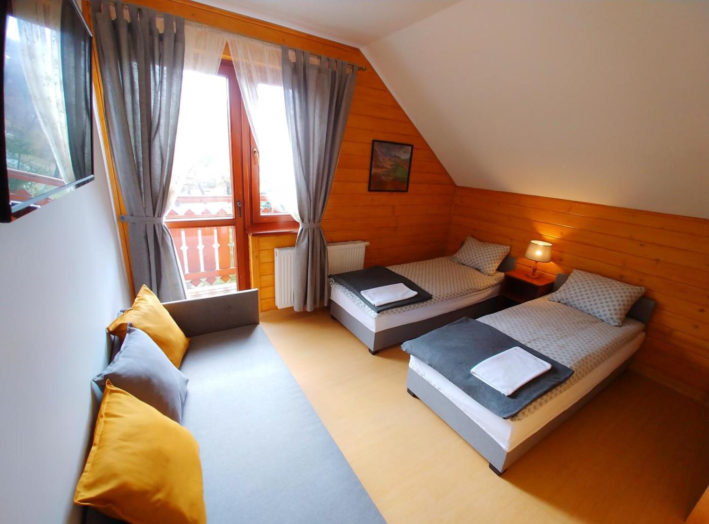 Pokój Czteroosobowy. The quadruple room includes a private bathroom equipped with a shower. The unit offers 3 beds. Pokój Czteroosobowy - 5 osobowy. Powierzchnia pokoju ok.: 14 mkw.
