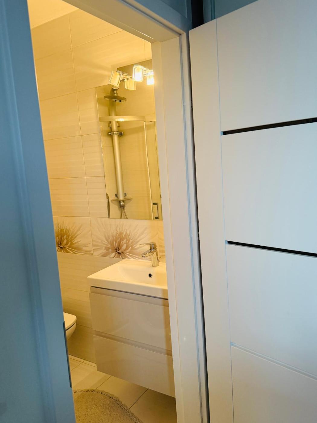 Studio. The studio features a wardrobe, a sofa, as well as a private bathroom boasting a shower and a hairdryer. Meals can be prepared in the well-fitted kitchen, which is fitted with a stovetop, a refrigerator, kitchenware and an oven. The studio offers a washing machine, a tea and coffee maker, a seating area, a flat-screen TV with streaming services, as well as city views. The unit has 1 bed. Studio - 2 osobowy. Powierzchnia pokoju ok.: 28 mkw.